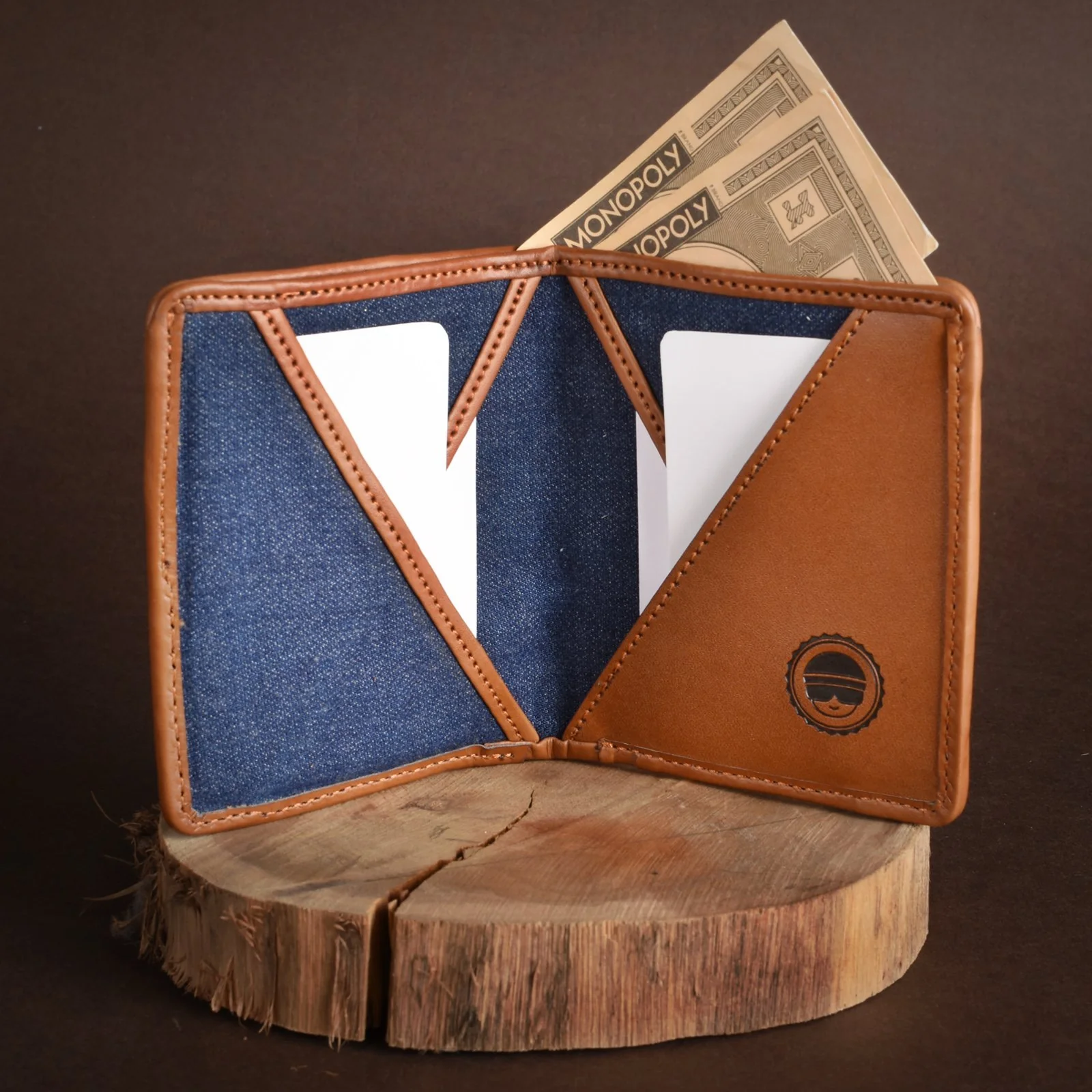 Our signature Bombay Trooper wallets made from cotton denim / canvas fabric and faux vegan leather.