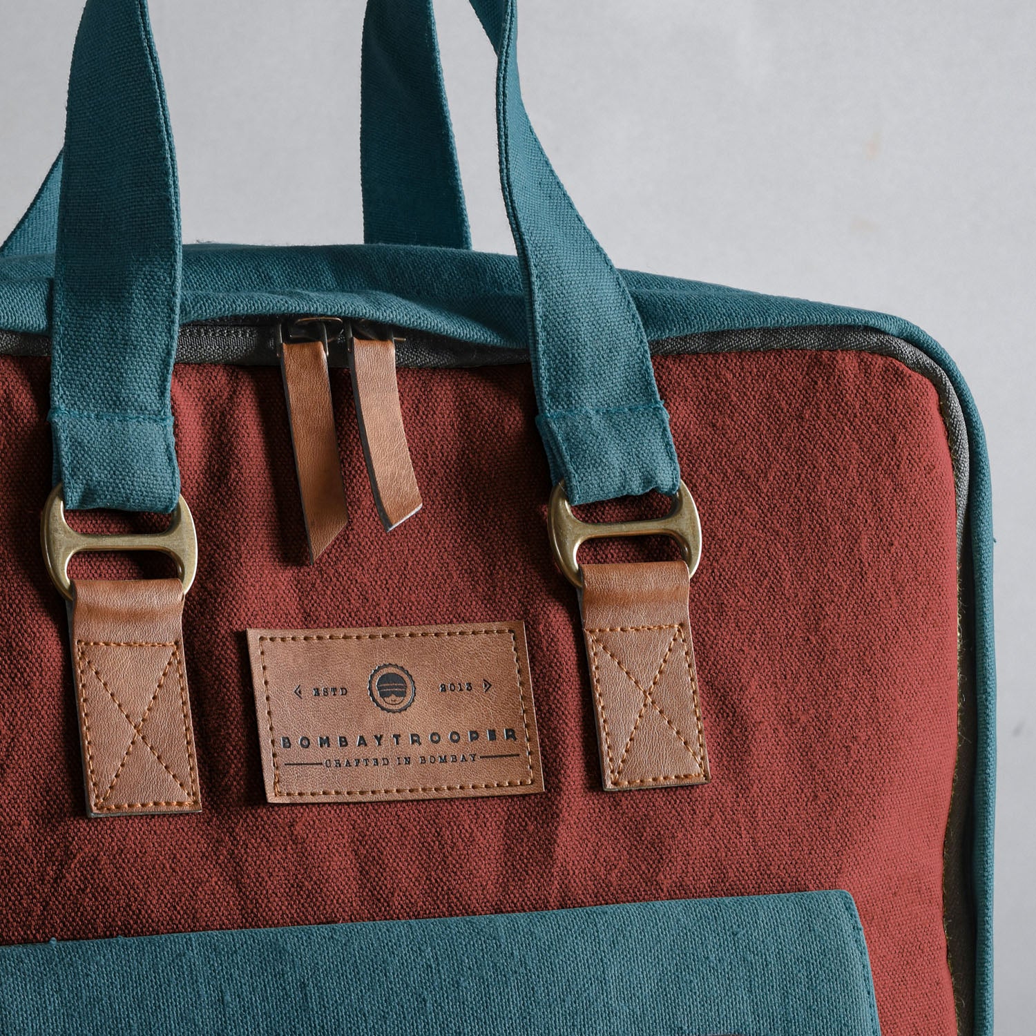 Maroon & Teal: miniTrooper Day Pack - Cotton Canvas Laptop Bag With Organizer