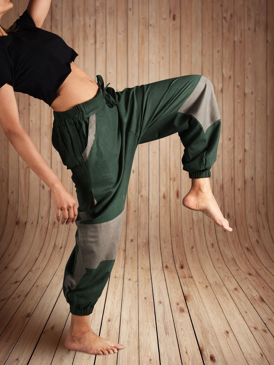 Olive Green Knee Patch Hoppers - Unisex Pants For Men And Women