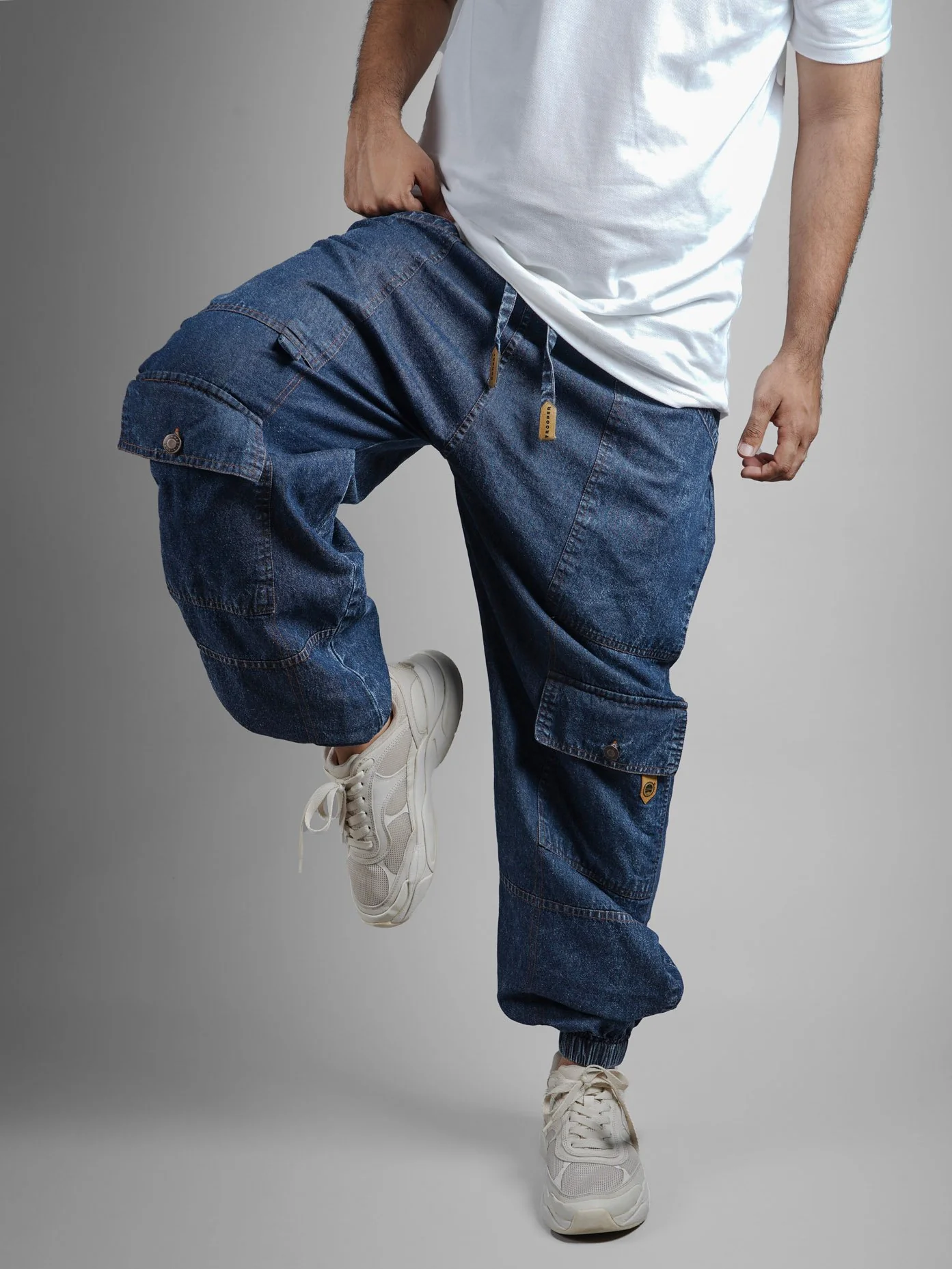Stone Washed Dark Blue Denim Cargo - Unisex Hoppers For Men And Women